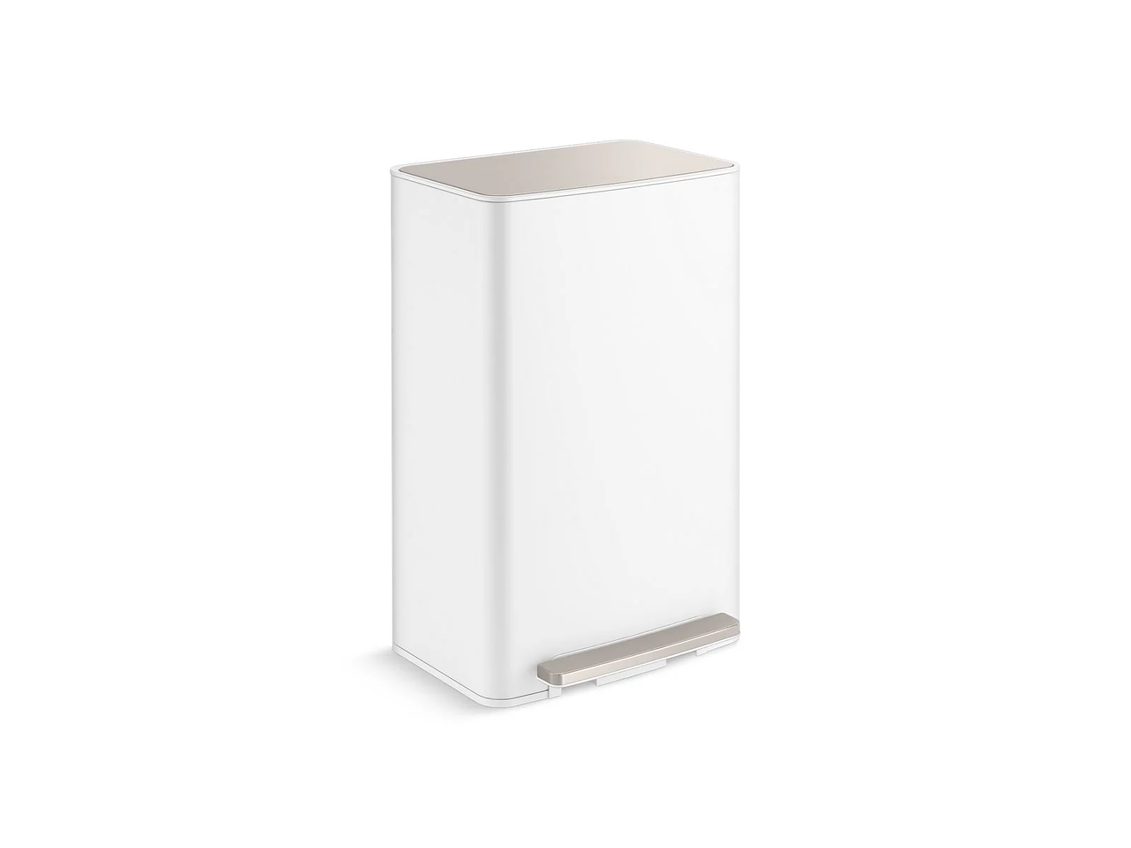 Crafted with thoughtful details and smart functionality, the KOHLER step trash can collection will simplify your daily routine at home and meet the style demands of its surroundings. This curved step trash can is constructed of stainless steel and has been designed to fit any brand of 13-gallon trash bag. The step trash can has an efficient footprint with clean lines and flush features, so it can be placed right against the wall or cabinet. It opens with a sturdy foot pedal, allowing for hands-free operation, and the fingerprint-resistant finish stays clean longer.